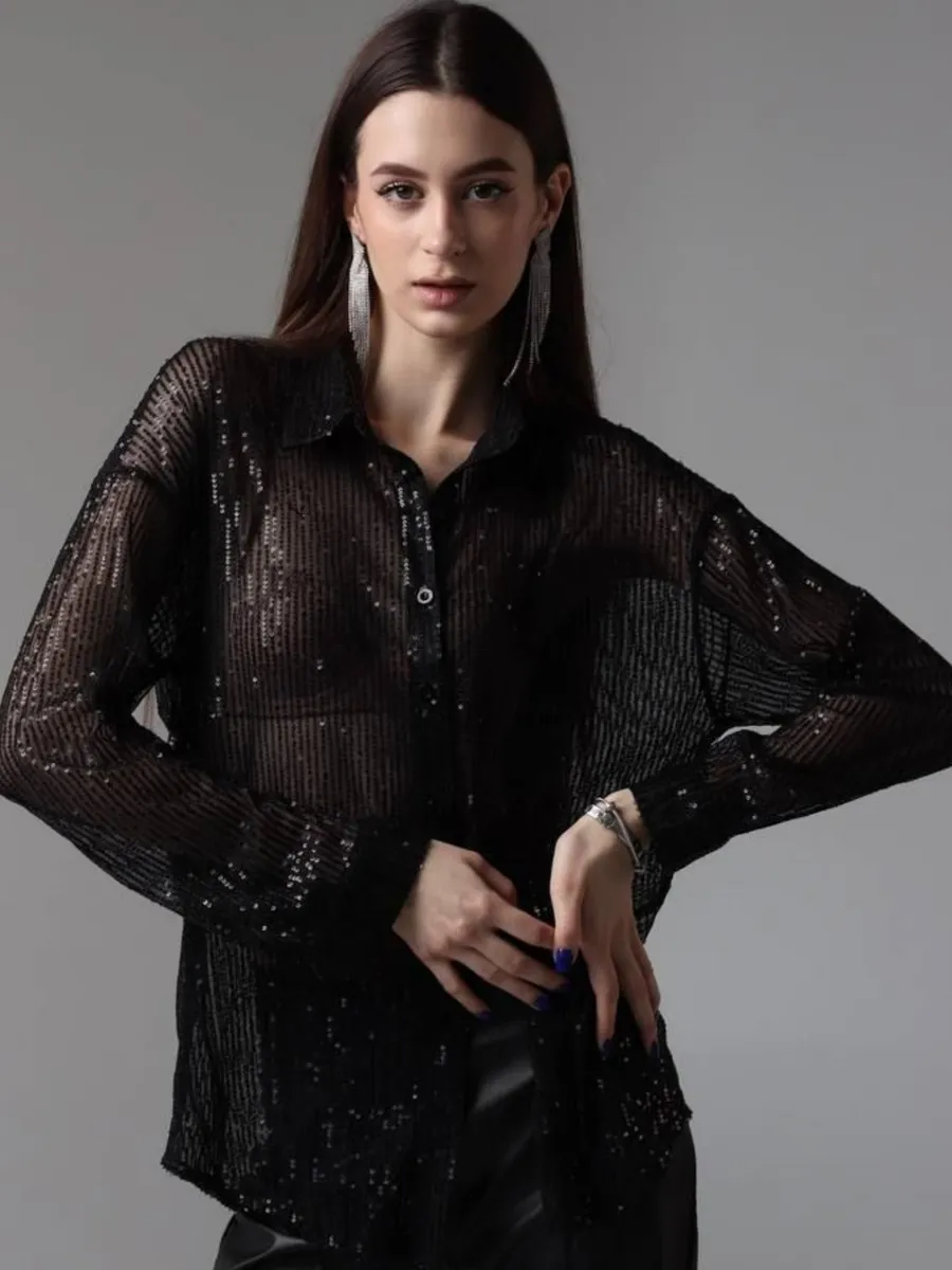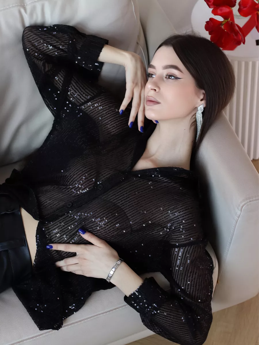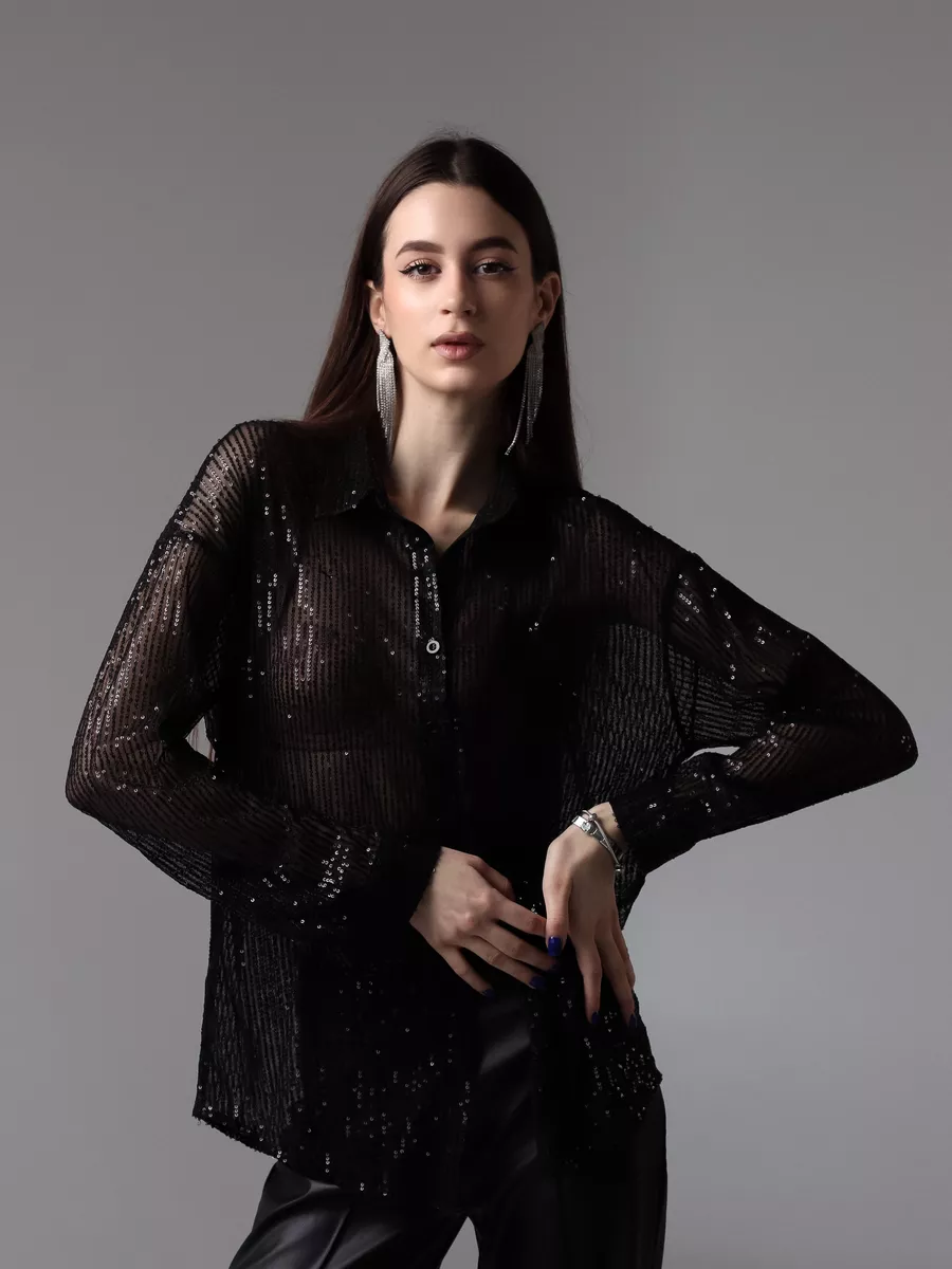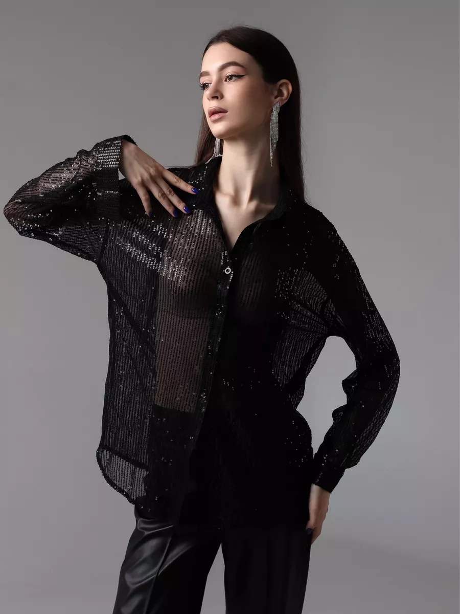 Праздничная стильная блузка - это проявление женской элегантности и шарма. Рубашка вечерняя идеально подходит для вечерних и праздничных мероприятий. Эта прозрачная блузка с пайетками позволит вам почувствовать себя особенной.