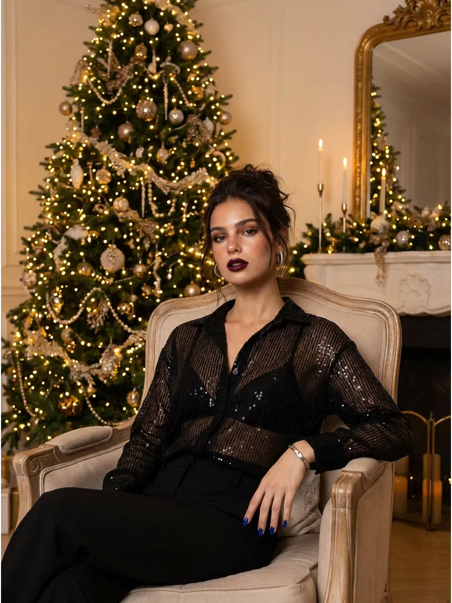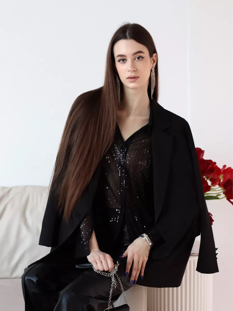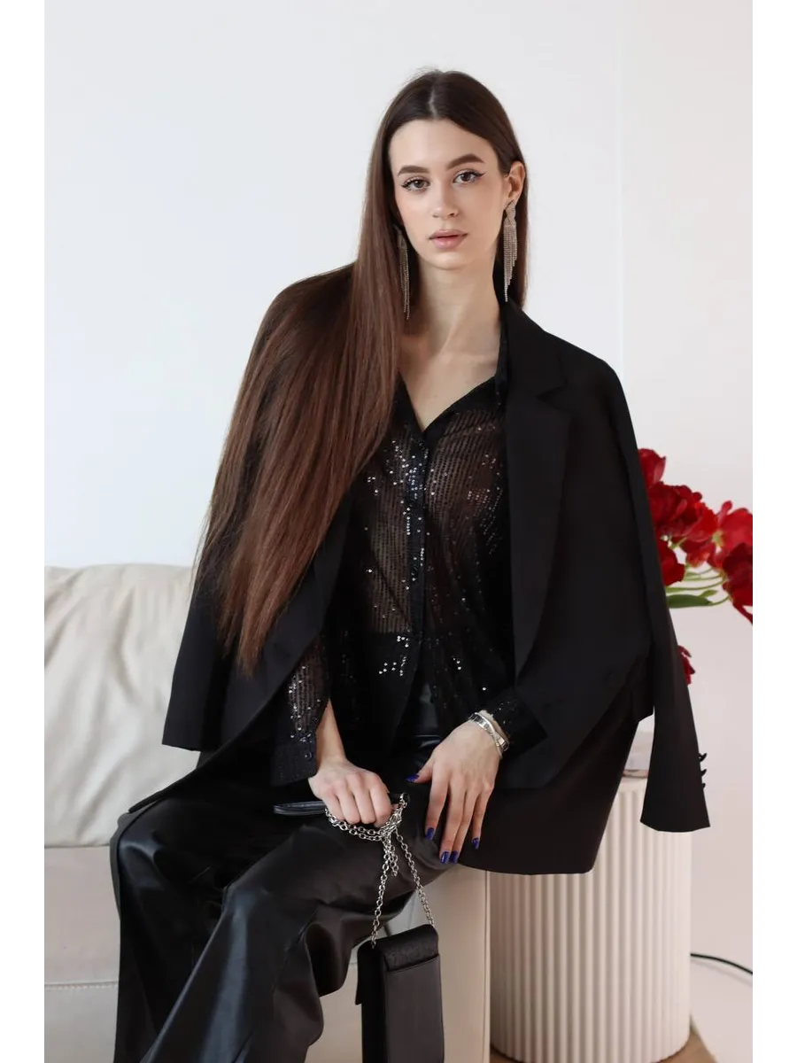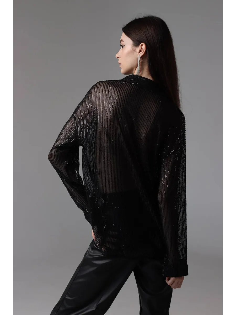 Праздничная стильная блузка - это проявление женской элегантности и шарма. Рубашка вечерняя идеально подходит для вечерних и праздничных мероприятий. Эта прозрачная блузка с пайетками позволит вам почувствовать себя особенной.