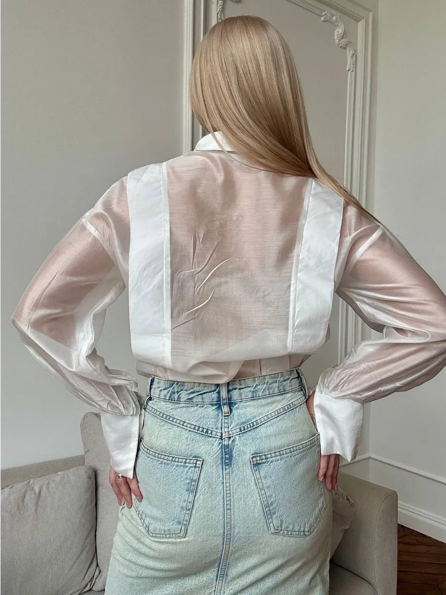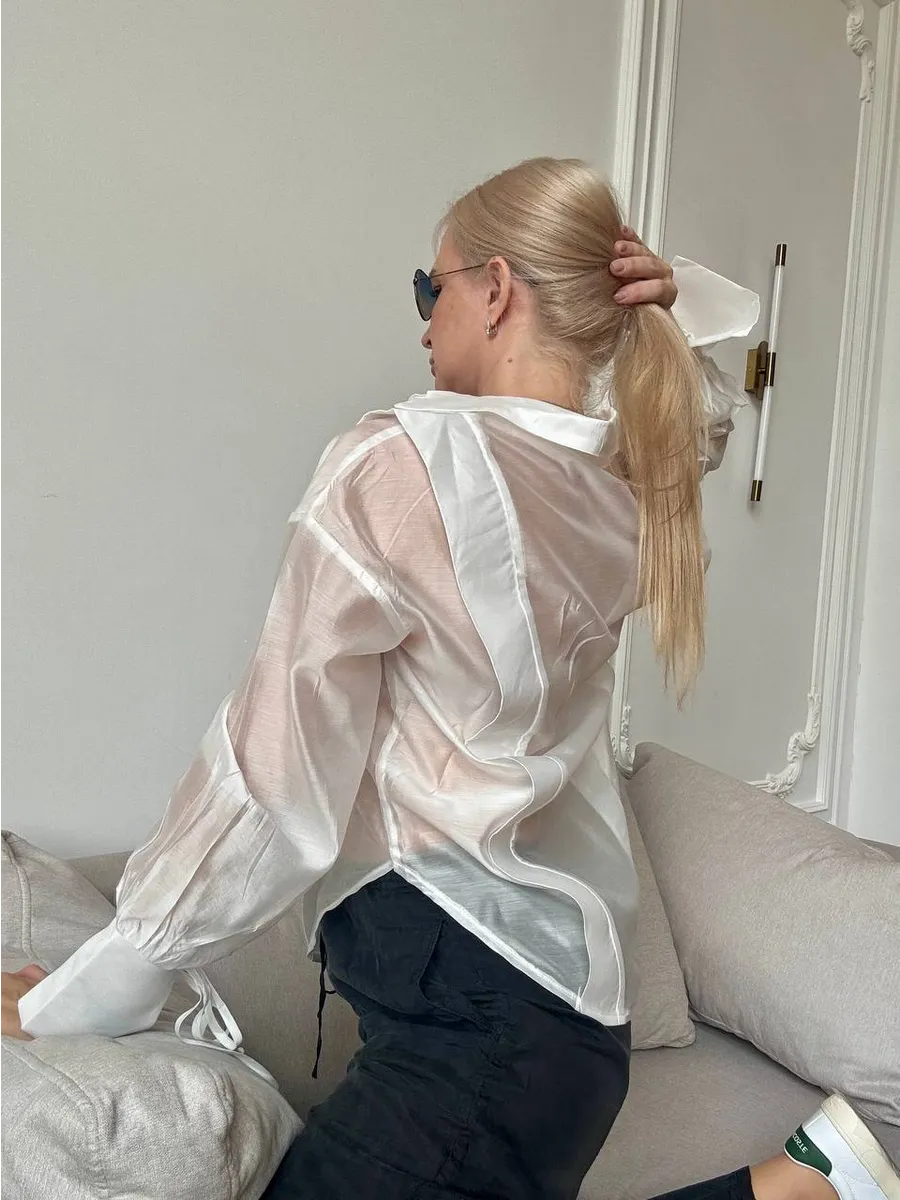Женская рубашка полупрозрачная оверсайз — легкость, вдохновлённая Pinterest-эстетикой.