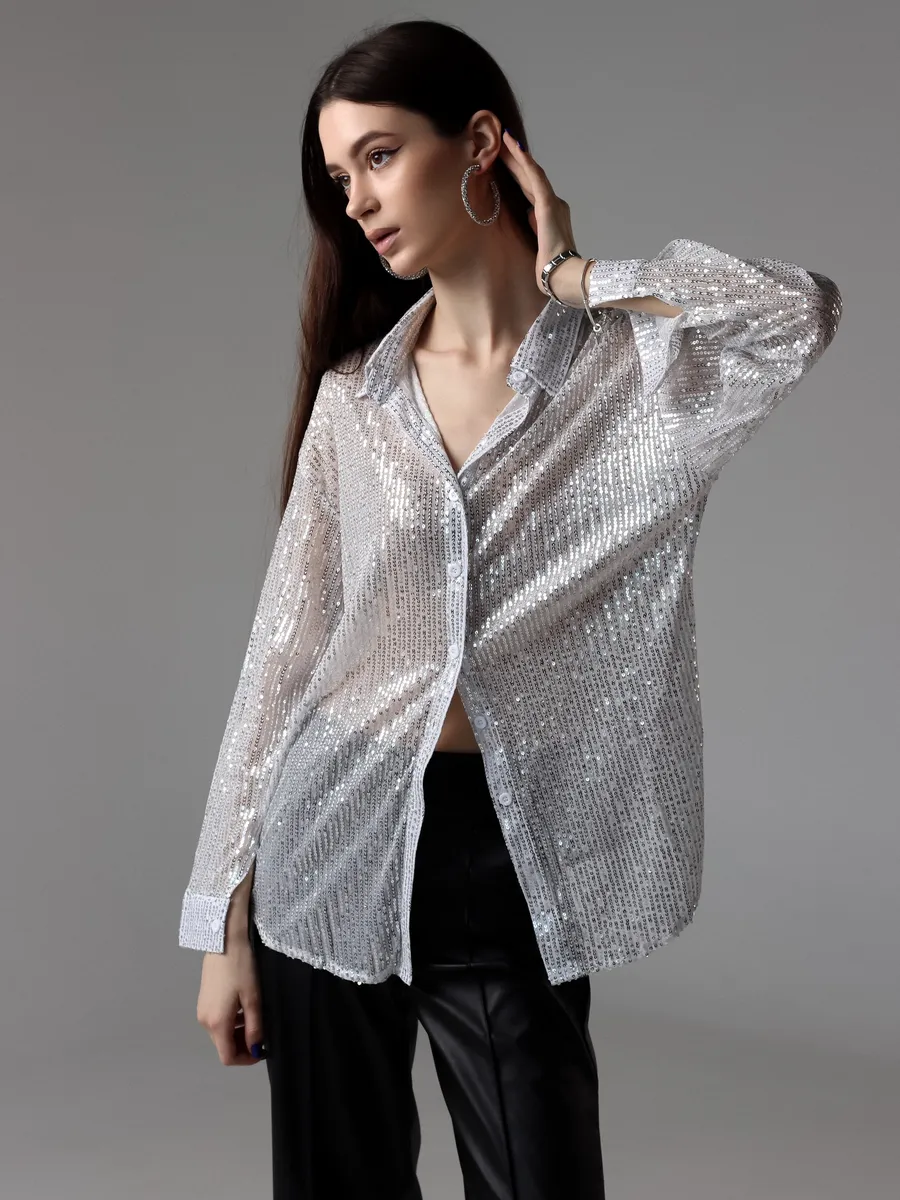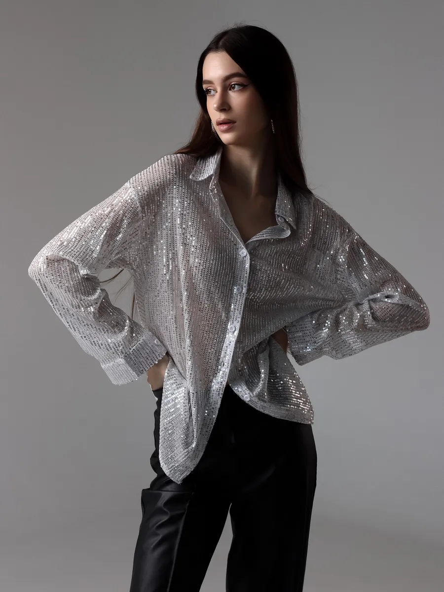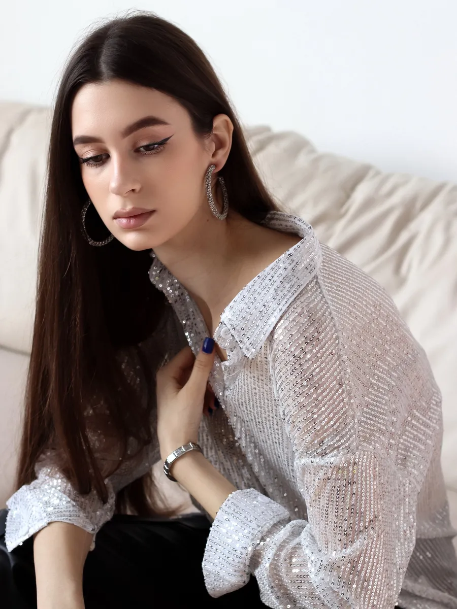Праздничная стильная блузка - это проявление женской элегантности и шарма. Рубашка вечерняя идеально подходит для вечерних и праздничных мероприятий. Эта блузка с пайетками позволит вам почувствовать себя особенной.