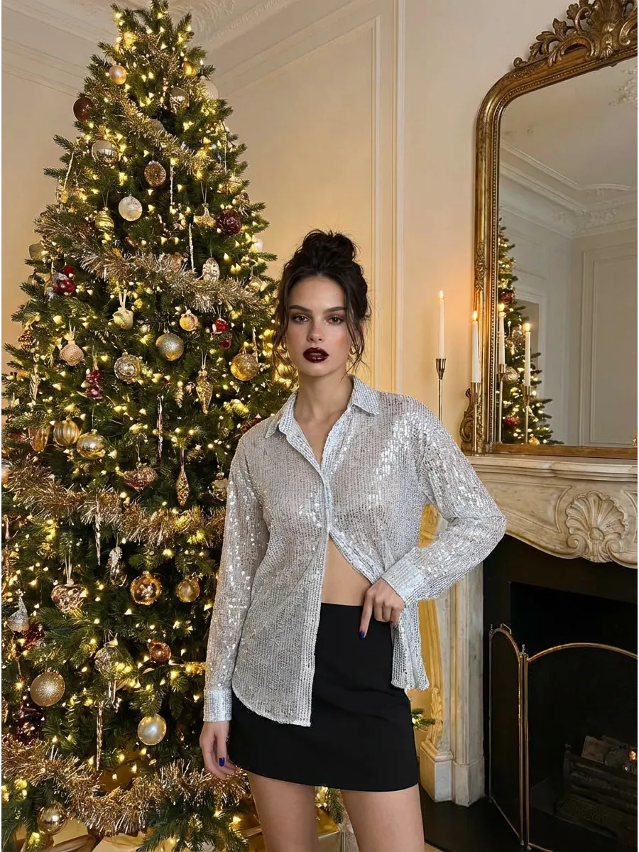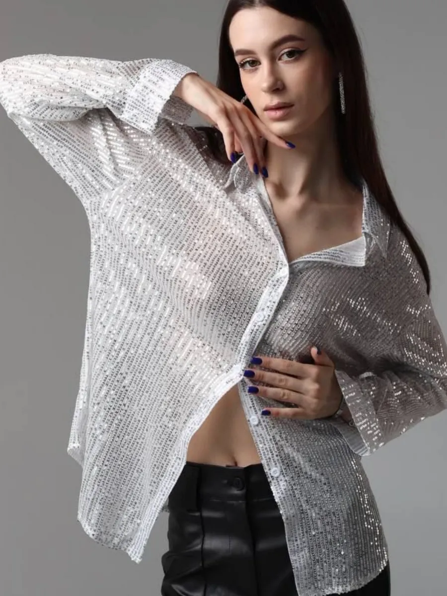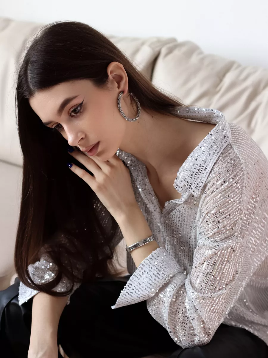 Праздничная стильная блузка - это проявление женской элегантности и шарма. Рубашка вечерняя идеально подходит для вечерних и праздничных мероприятий. Эта блузка с пайетками позволит вам почувствовать себя особенной.