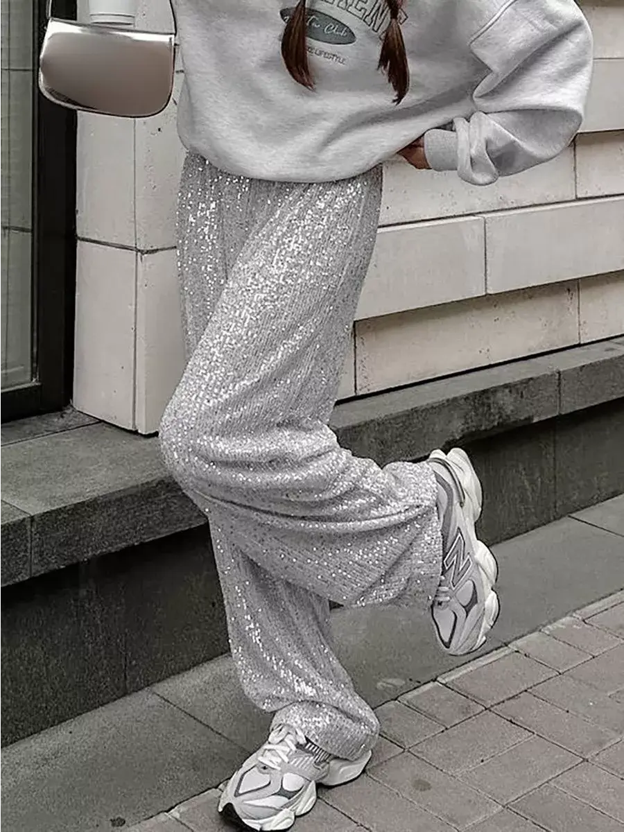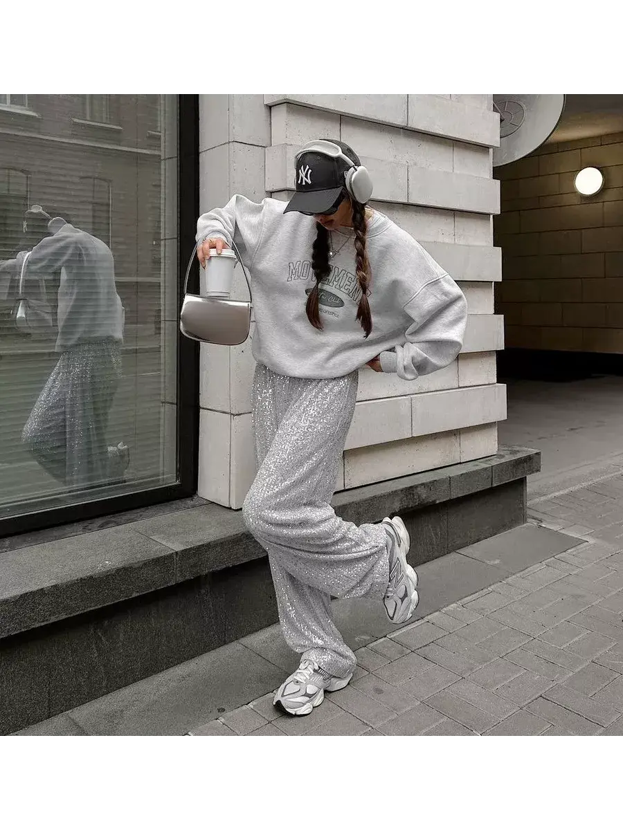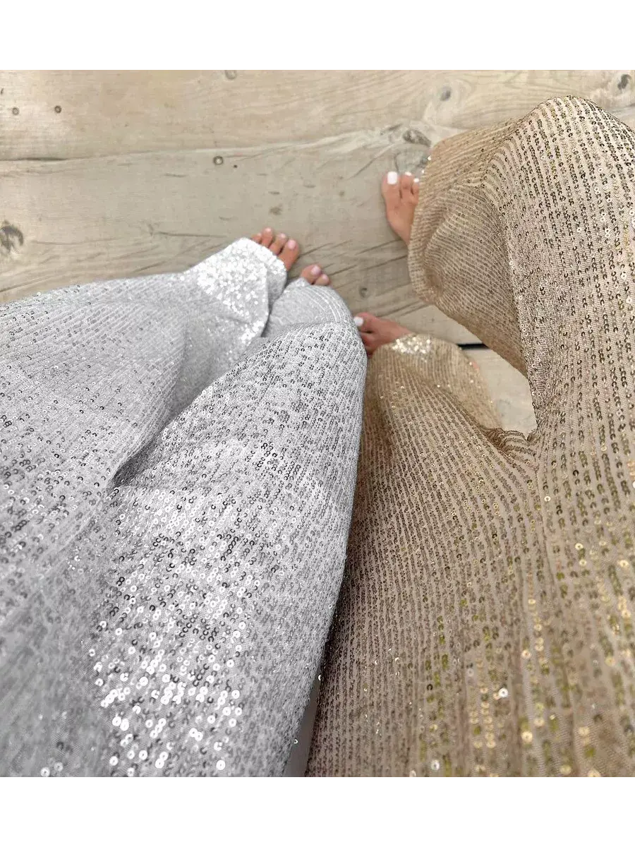 Нарядные вечерние брюки созданы специально для особых случаев, таких как выпускной бал или гала-вечер на палаццо. Женские классические линии этих прямых брюк способны подчеркнуть достоинства любой фигуры и придать тонус вашему стилю. Легкий серый оттенок делает их универсальными на любое время года, особенно в жаркий летний период. Широкий крой и эластичная резинка по талии обеспечивают комфортную посадку и свободу движений. Оверсайз силуэт добавит неформальности и современности в ваш образ. Блестящие штаны с пайетками - это одежда для особых моментов, она наполняет атмосферу яркостью и символизирует радость праздника.