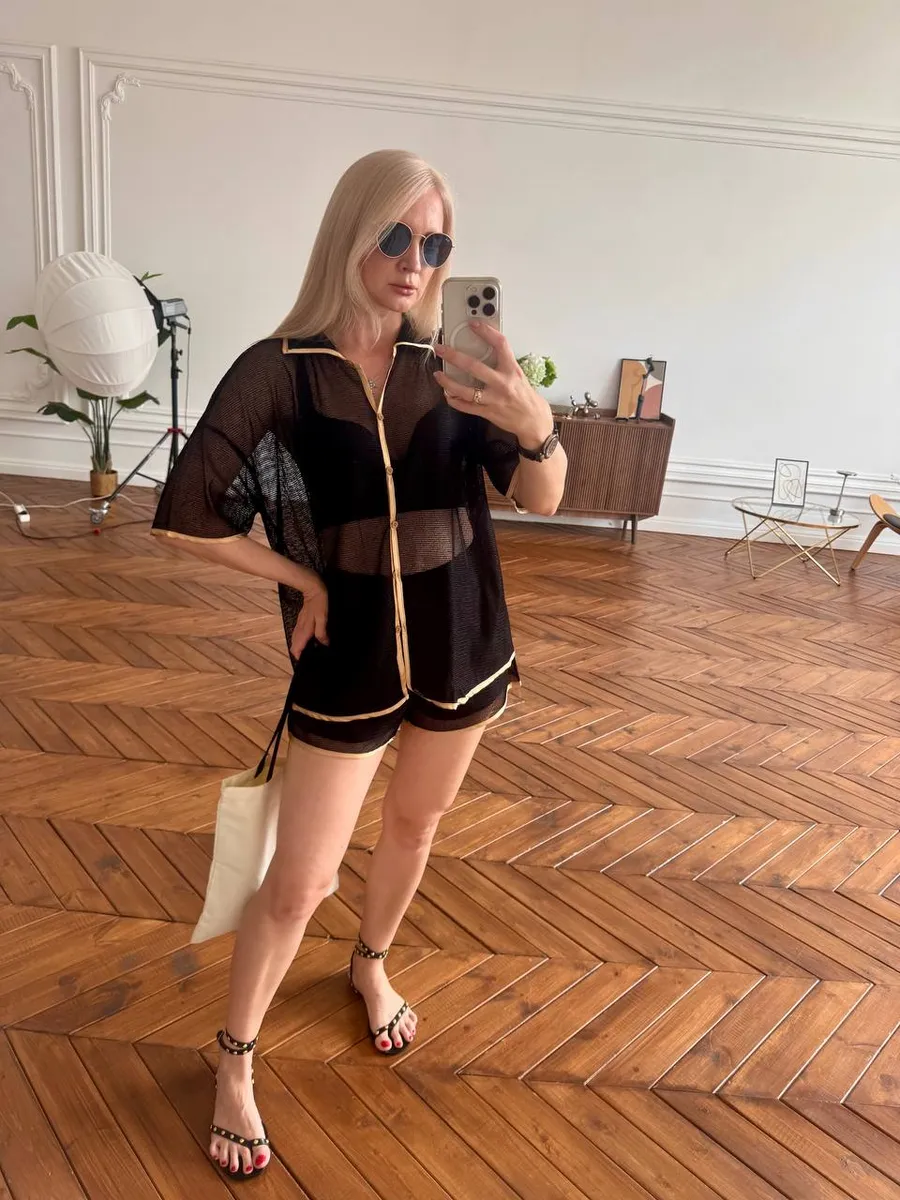 Этот пляжный костюм подойдёт для фотосессий, вечеров у моря, отдыха в отеле, а также для дома — всегда удобно, стильно и в тренде. Современный фасон, приятная к телу ткань и актуальный дизайн делают его выбором №1 среди модных образов этого сезона.
