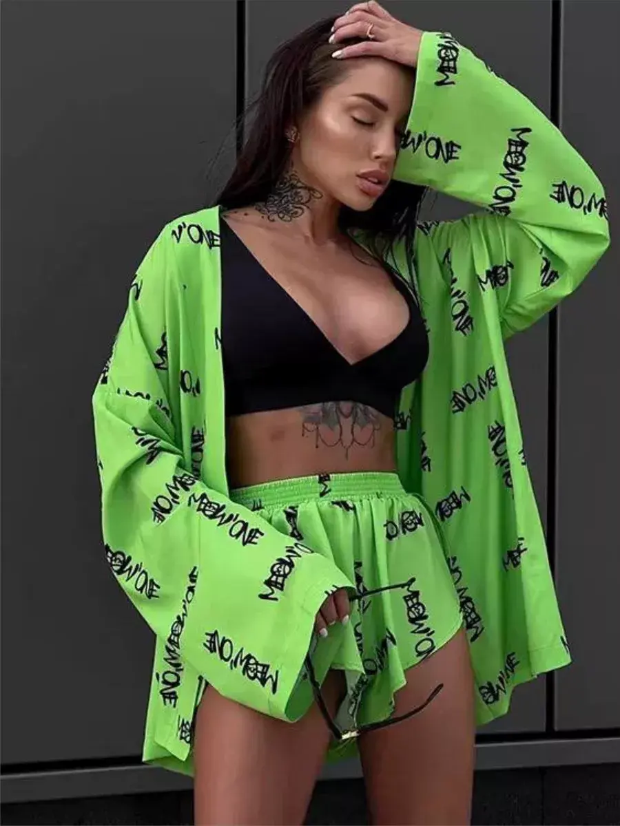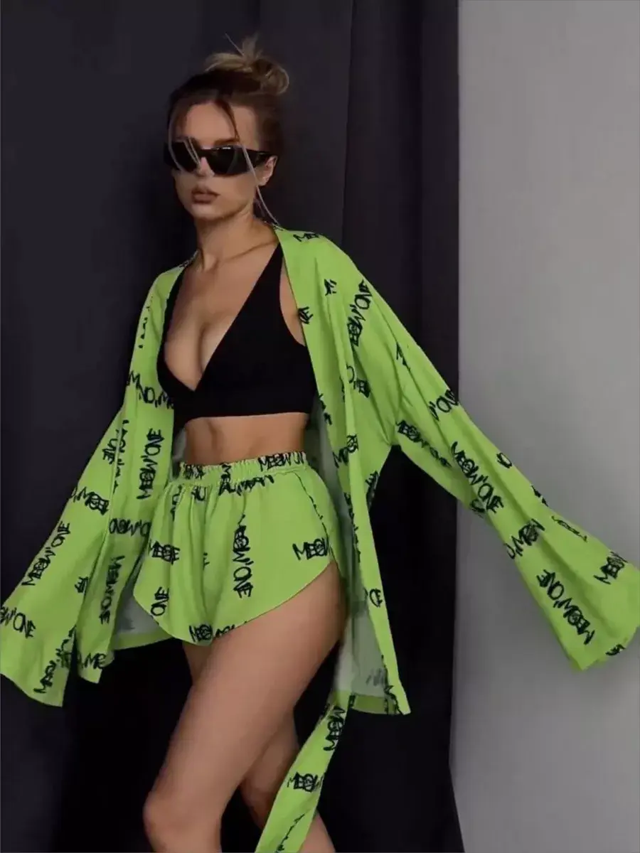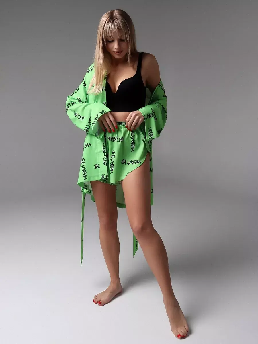 Шелковый костюм двойка состоит из коротких шорт и рубашки с длинным рукавом в стиле кимоно. Этот летний наряд отлично подойдет как для пляжа, так и дома. Рекомендуем для девушек которые любят японский стиль, а также выглядеть дома очень стильно. Кимоно имеет универсальную посадку, хороший крой, рубашка на поясе в стиле оверсайз. Не мнется и выдерживает много стирок. Шорты на резинке комфортны в носке. Пижамный летний костюм подойдет для пляжной вечеринки. Также в нем будет комфортно спать за счет мягкой ткани и свободной посадки. Еще один вариант использование - домашний халат или пижамный костюм.