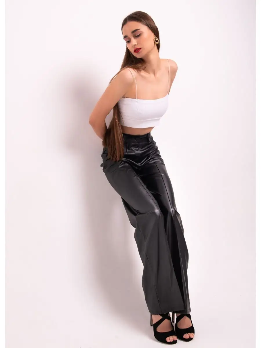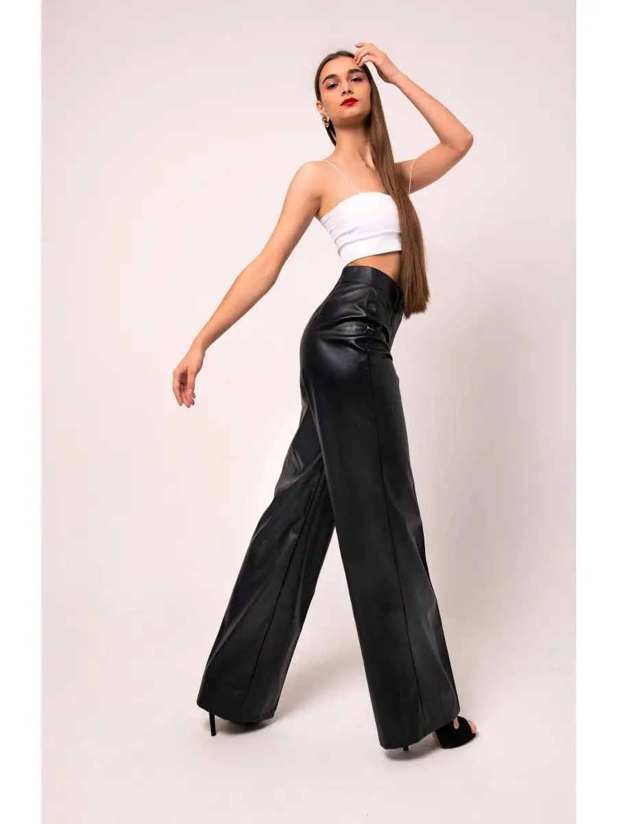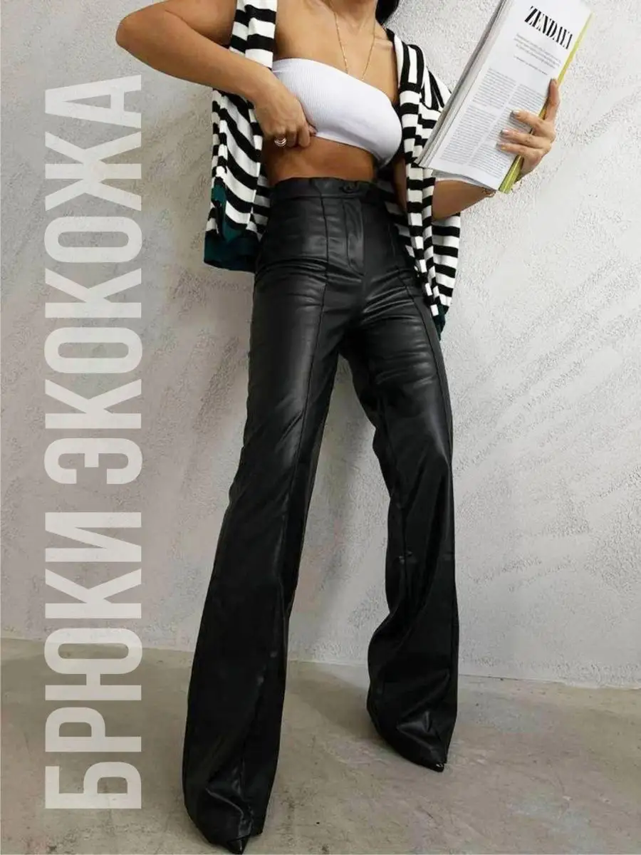 Мы рады представить Вам нашу новинку - потрясающие женские кожаные брюки в стиле палаццо. Модель выполнена из качественной 100% искусственной кожи, проста в уходе, и хорошо сидит на фигуре.