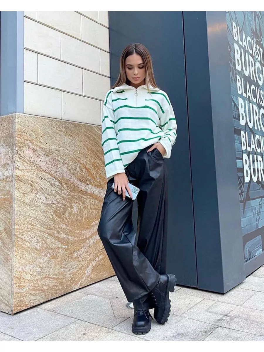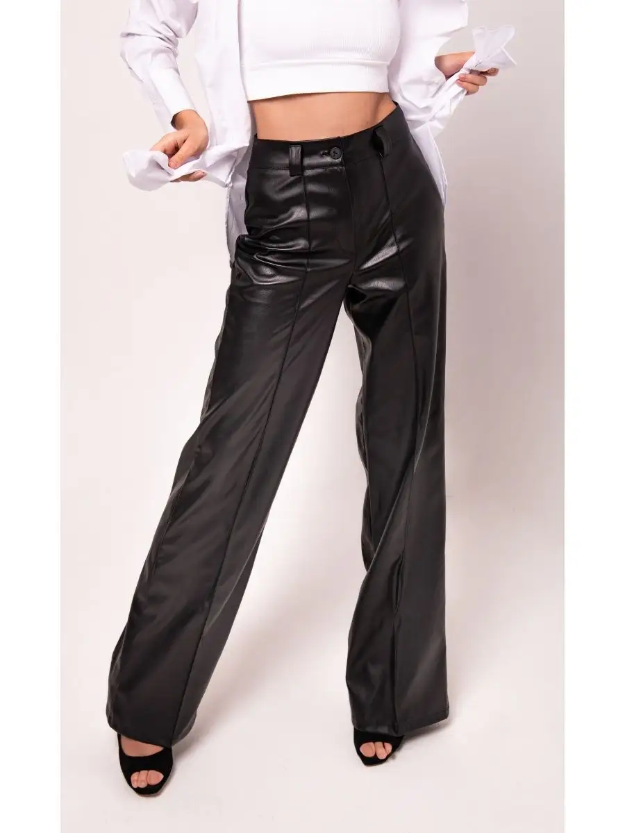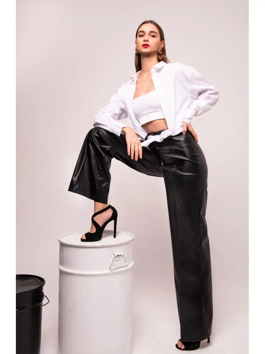 Мы рады представить Вам нашу новинку - потрясающие женские кожаные брюки в стиле палаццо. Модель выполнена из качественной 100% искусственной кожи, проста в уходе, и хорошо сидит на фигуре.