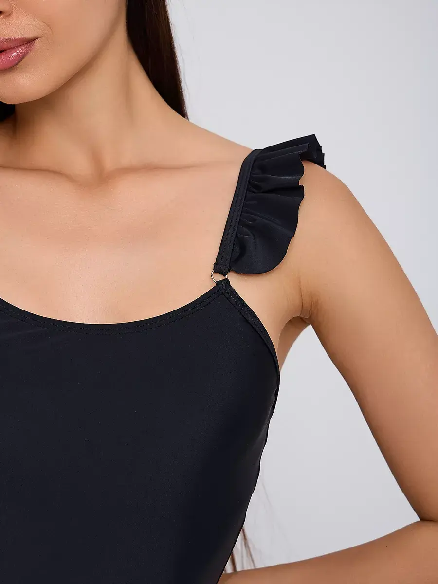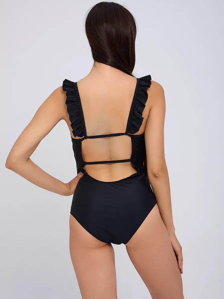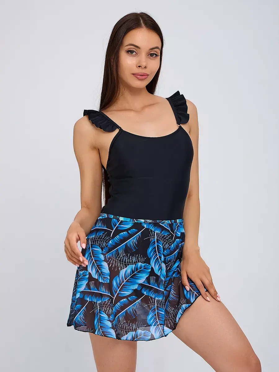 Купальник с открытой спиной добавит легкости и изысканности вашему образу, при этом обеспечивая комфорт и удобство движения. Сплошное исполнение купальника гармонично сочетается с оборками и юбочкой, создавая женственный и привлекательный вид.