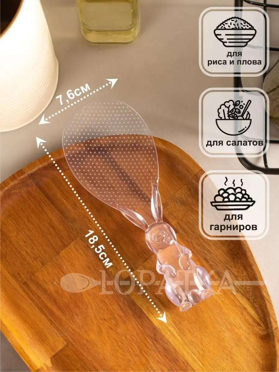 Кухонная ложка предназначена для приготовления различных блюд, а также для подачи готовых блюд и сервировки стола, подачи холодных закусок и салатов. Лопатка стоит на подставке в виде кролика. Украсит вашу кухню и будет милой деталью, которая привлечет внимание гостей. Особенно актуален зайчик к Пасхе. Кулинарная ложка представлена в белом и розовом цветах. Такую кухонную ложку можно использовать для мультиварки. Лопатка кулинарная изготовлена из безопасного пищевого пластика (РР) и пшеничного волокна. В комплекте - лопатка для кухни 1 шт. Кухонная утварь в виде лопатки для кухни с кроликом станет хорошим подарком для подруги на 8 марта, для коллег, для бабушки, на Пасху, для любимой мамы.