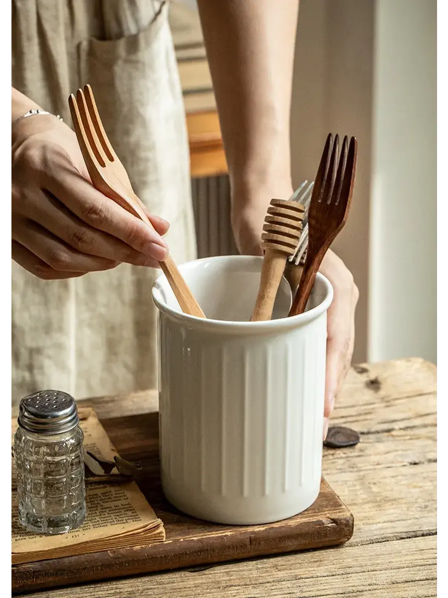 Элегантная и стильная подставка для столовых приборов из высококачественной керамики с рельефным рисунком - идеальное решение для организации кухонных принадлежностей. Этот органайзер не только поможет вам держать ложки под рукой во время приготовления пищи, но и станет ярким акцентом вашего интерьера. Кроме того, благодаря специально продуманному дизайну сушилка для столовых приборов обеспечивает быстрое высыхание и предотвращает скапливание бактерий. Такой элегантный предмет кухни станет идеальным подарком для любой женщины. Этот предмет добавит нотки самобытного скандинавского стиля и подойдет под все стили от классики до современного лофта. Декоративный стакан можнт быть использон как ваза для цветов, как органайзер для хранения канцеляции, или кисточек или зубных щеток в ванной комнате. Такой лоток создаст порядок и и принесет эстетическое удовольствие от использования. Позвольте себе насладиться функциональностью и изяществом этой превосходной подставки!