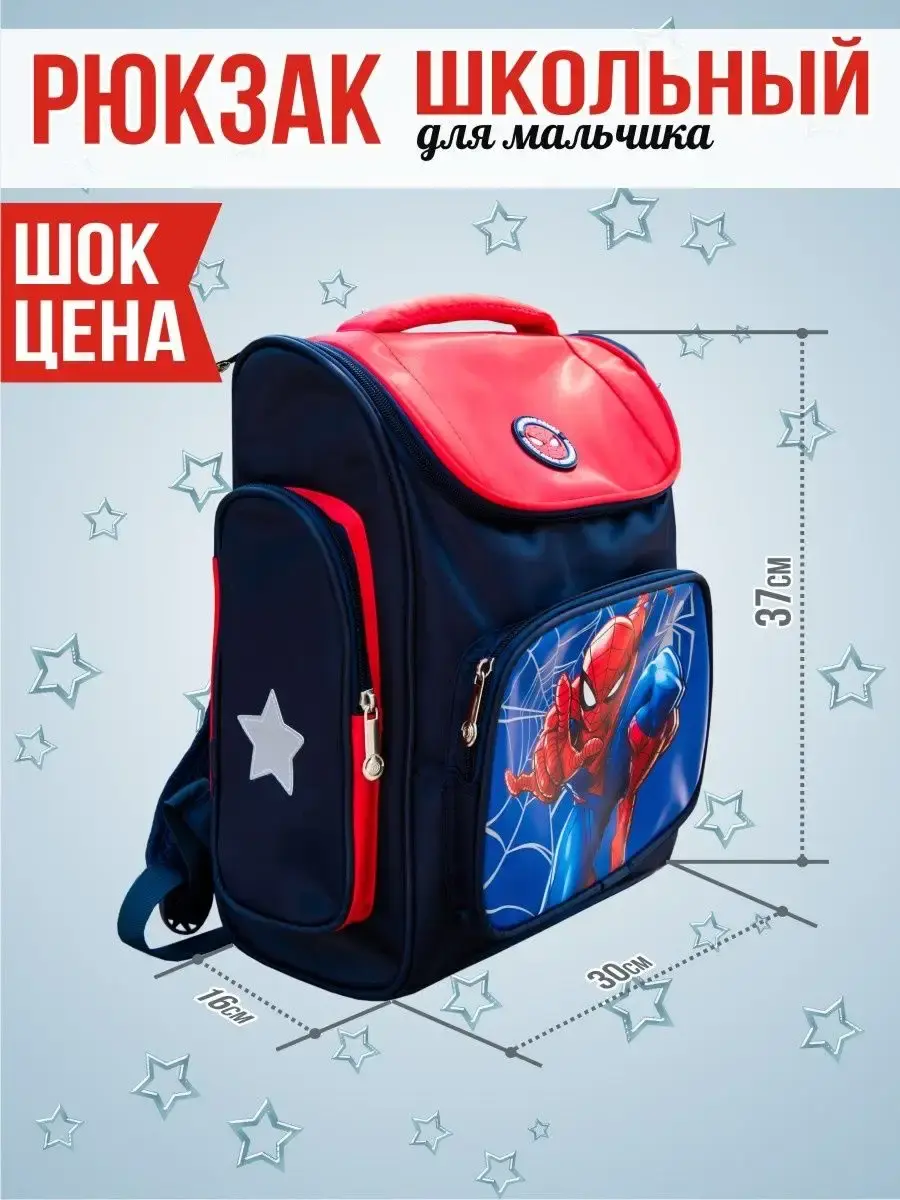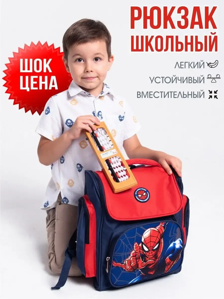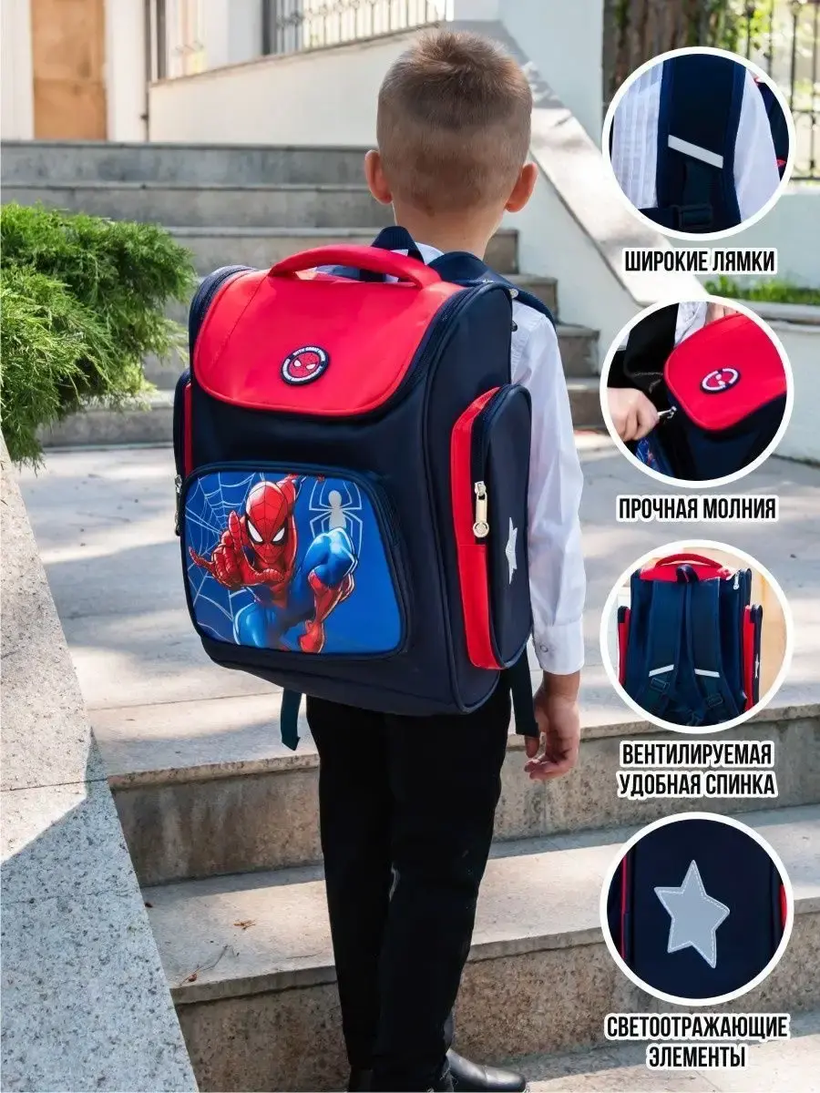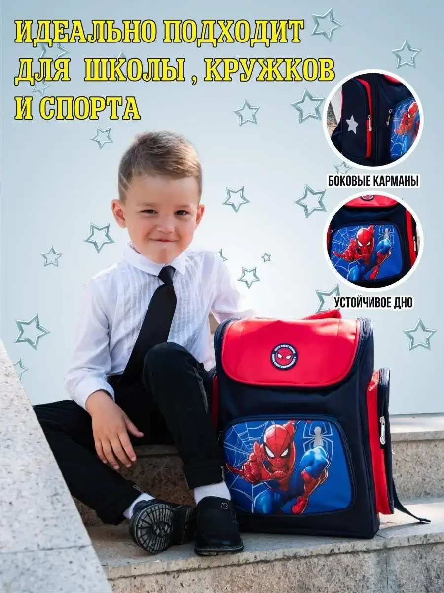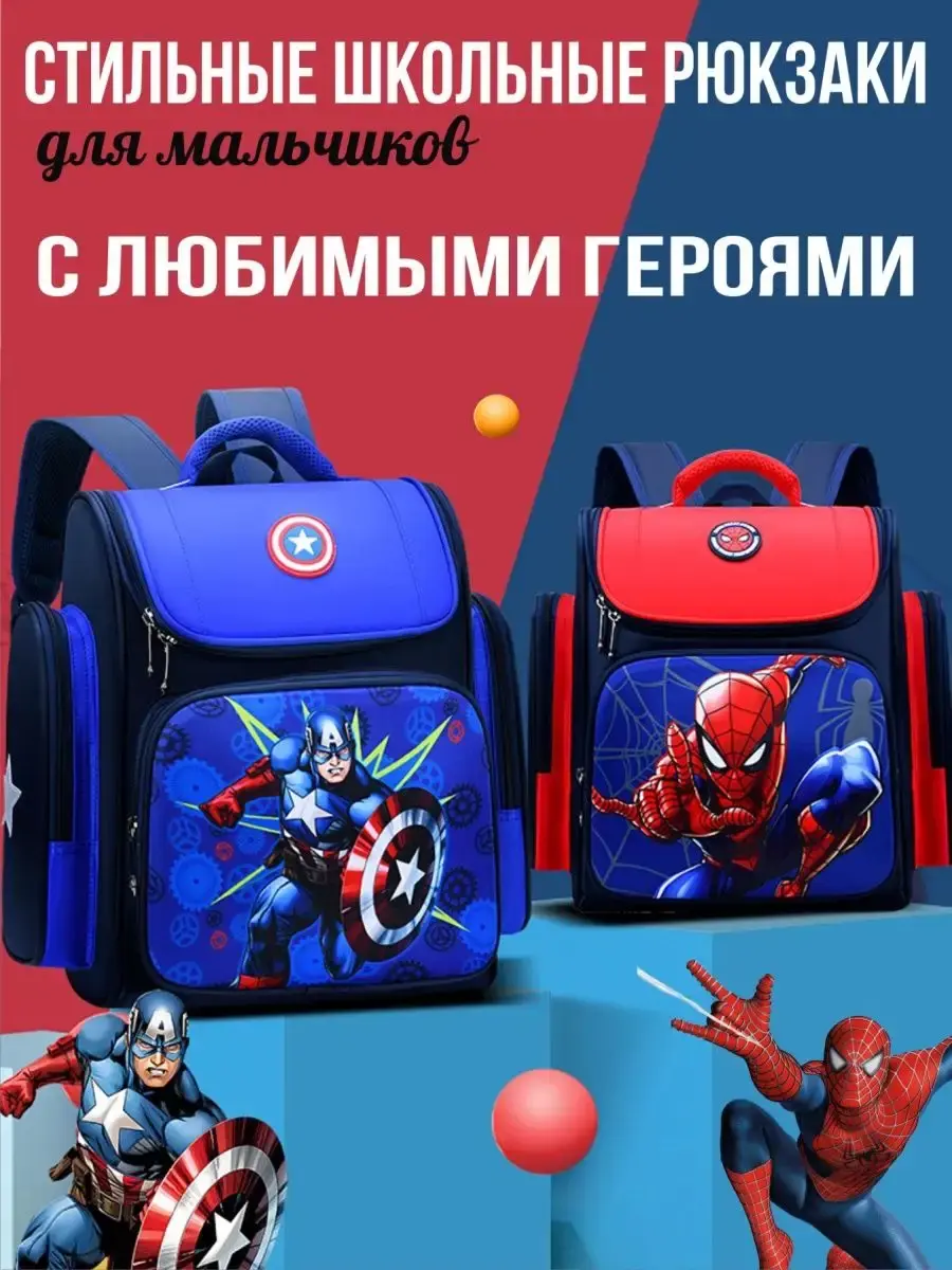 Школьный рюкзак для мальчика с принтом подойдет для первоклассника. Ранец подходит для школьников 1-2 класса. Рисунок Человек-паук и Капитан Америка обрадует любого мальчика. Качественный пошив гарантирует долгий срок службы. Школьный портфель вместительный - в него войдут все учебники.
