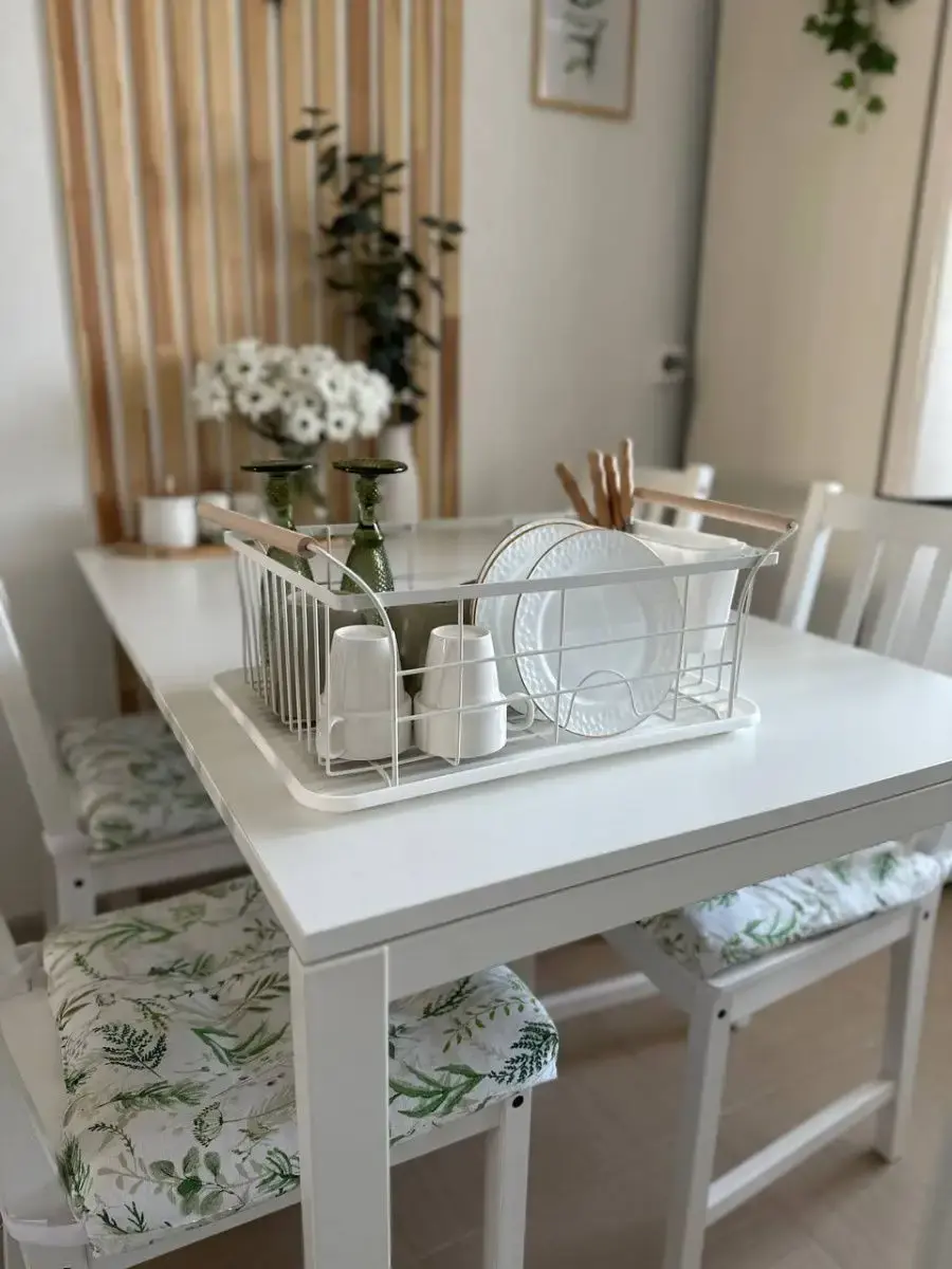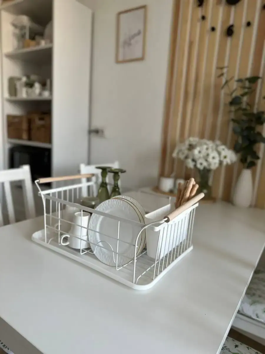 Сушилка для посуды настольная LOPATKA сделана из высококачественной металлической стали (нержавейка), а поддон из прочного пластика ABC. У кухонной сушилки стильный дизайн благодаря деревянным ручкам, а также она очень функциональна. В комплект входит одноярусная сушилка с удобными ручками для переноса и подъема, съемный поддон для стока воды, лоток для столовых приборов. Товар не подвергается коррозии и имеет качественный окрас. Белый цвет лаконично впишется в интерьер вашей кухни в квартире, на даче или доме. Сушилку можно ставить рядом с раковиной, но также и убирать в закрытый шкаф на полку.