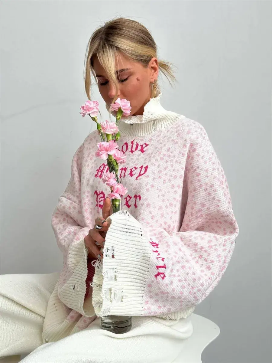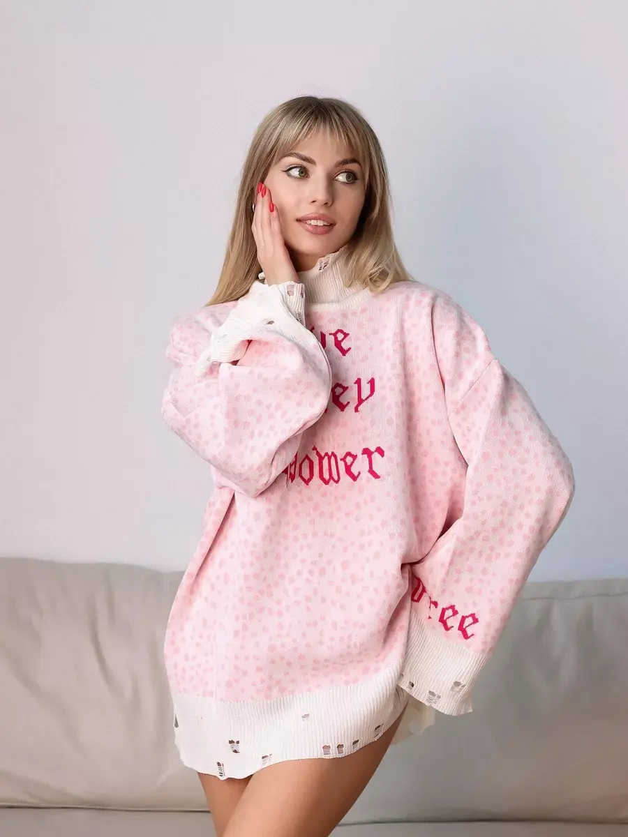 Объемный тонкий свитер состоит на 95% из хлопка. Длинный и теплый джемпер с дырками будет отличной альтернативой худи, балахону или плюшевой кофте. Свободный oversize свитер больших размеров не сковывает и подойдет для любого типа фигуры. Дырявый удлиненный свитшот с высокой горловиной, спущенной линией плеча и свободными рукавами. Комфортный, подходит для повседневной носки даже летом, мягкий и не колется, при этом трикотажная кофта с длинным рукавом не мнется, держит форму, сохраняет цвет после стирки. Свитер женский оверсайз доступен в двух цветах: белый и розовый в стиле barbie.