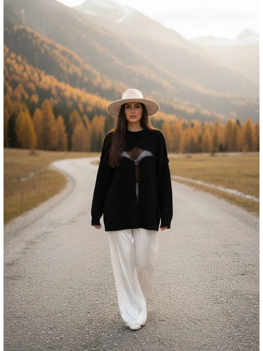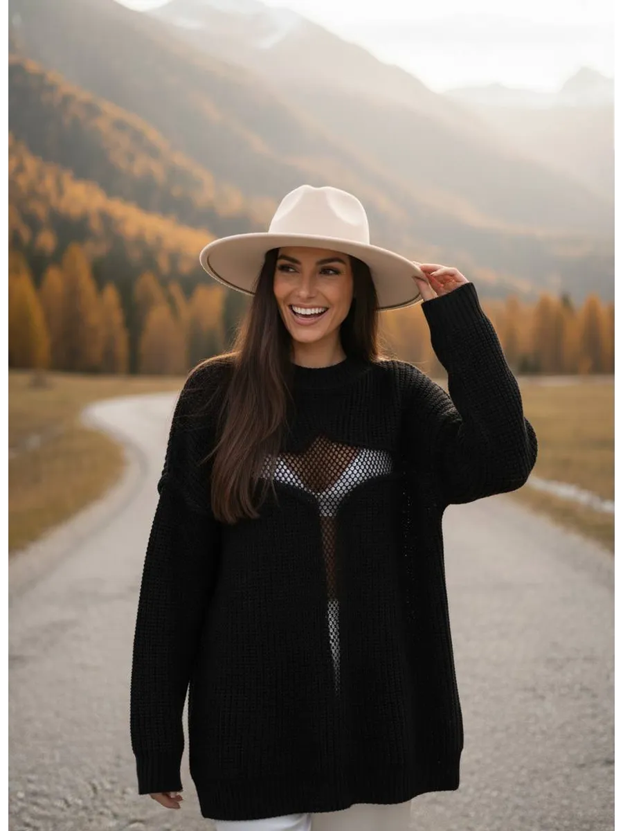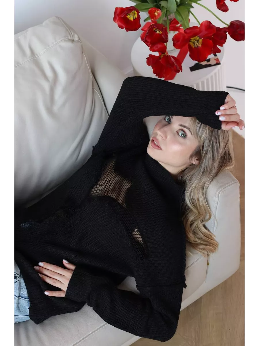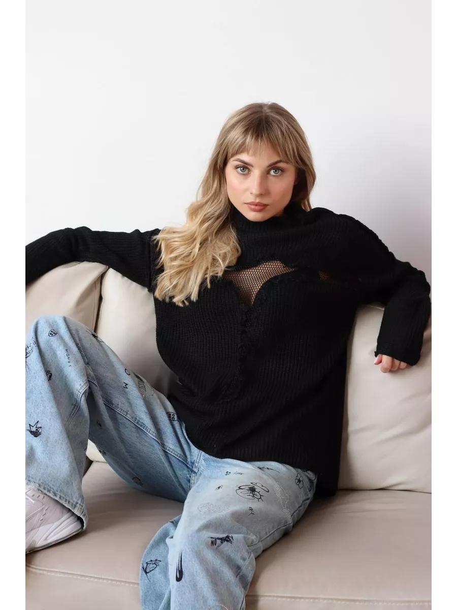 Свитер рваный сетка - уникальная одежда, которая привлекает внимание своим стилем и комфортом. Глубокий вырез и оверсайз размер добавляют элегантности и свободы движений. Свитер с горлом достаточно тонкий и подойдет на прохладный летний сезон.