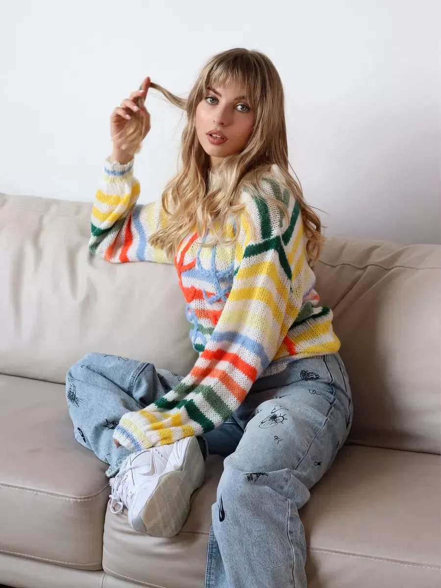 Оверсайз свитер сделает ваш стиль ярким и уникальным, добавив нотки корейского стиля.