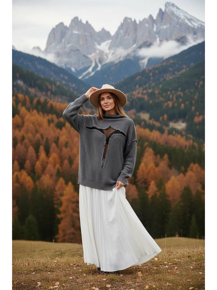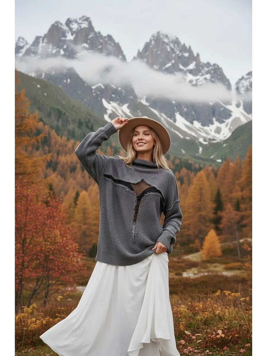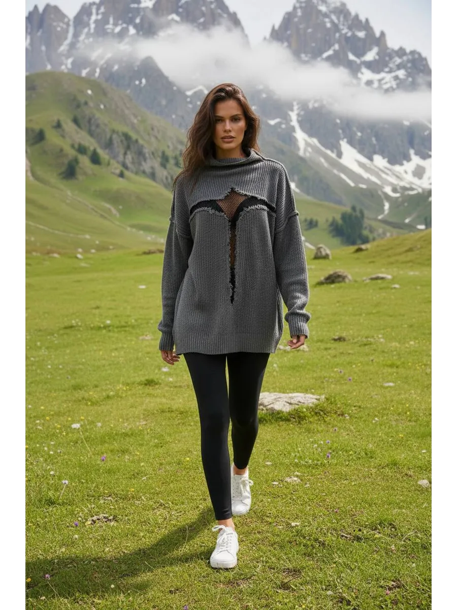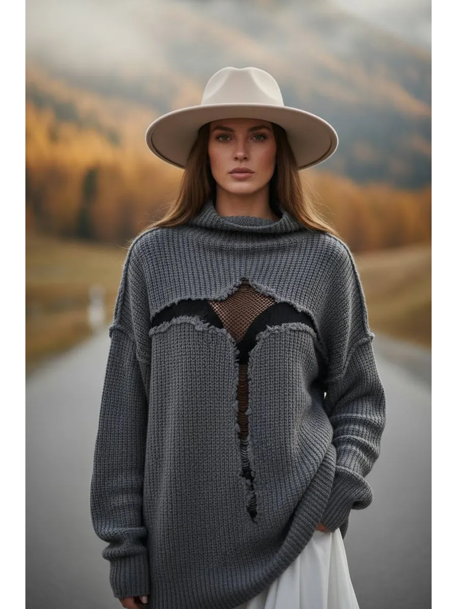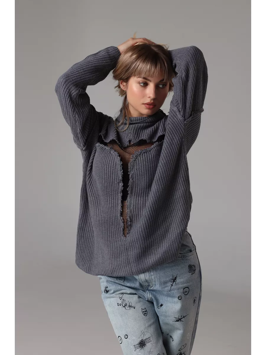 Свитер рваный сетка Y2K - уникальная одежда, которая привлекает внимание своим стилем и комфортом. Глубокий вырез и оверсайз размер добавляют элегантности и свободы движений. Свитер достаточно тонкий, что позволяет его носить в прохладное лето, либо зимой под верхнюю одежду.