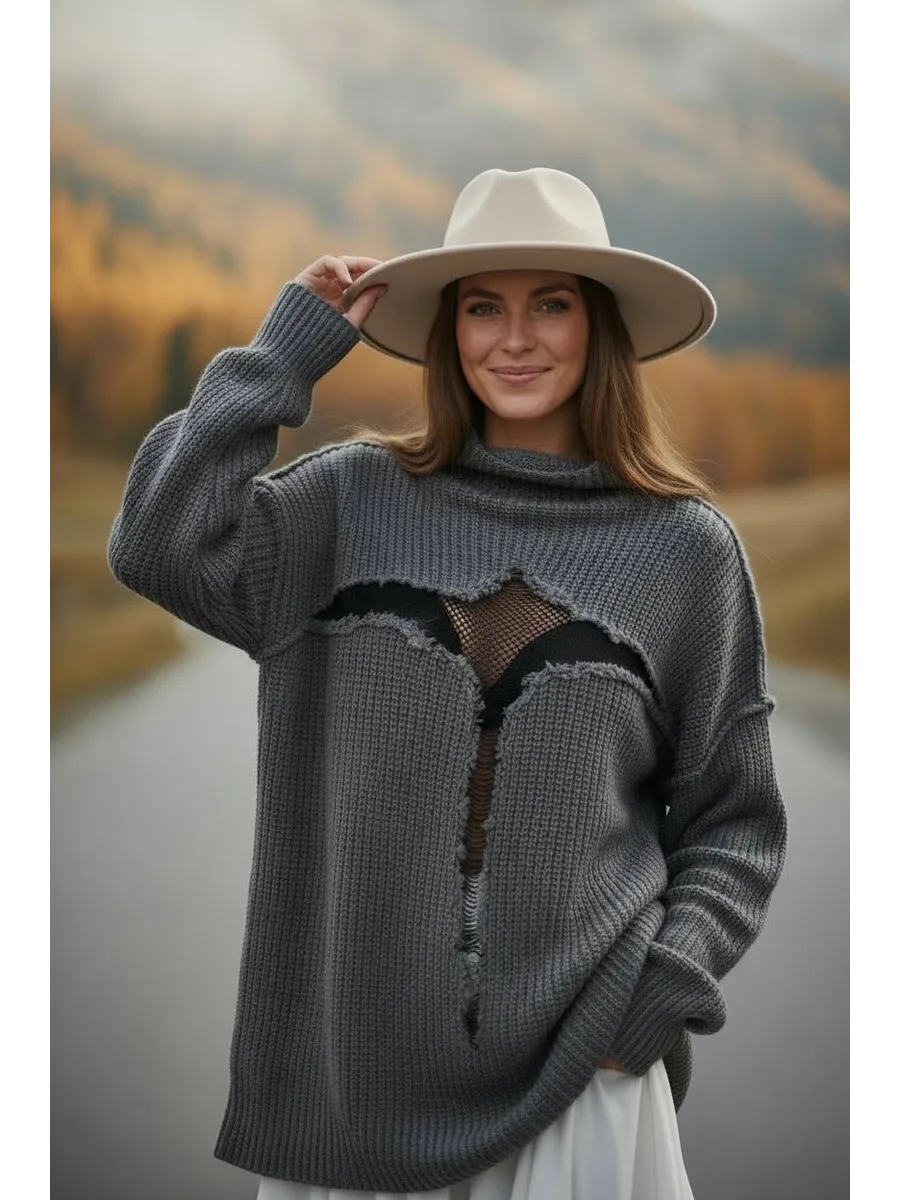 СВИТЕР РВАНЫЙ серый