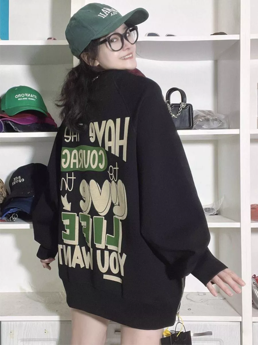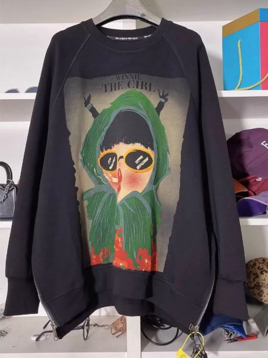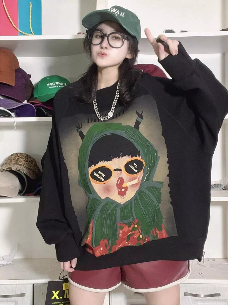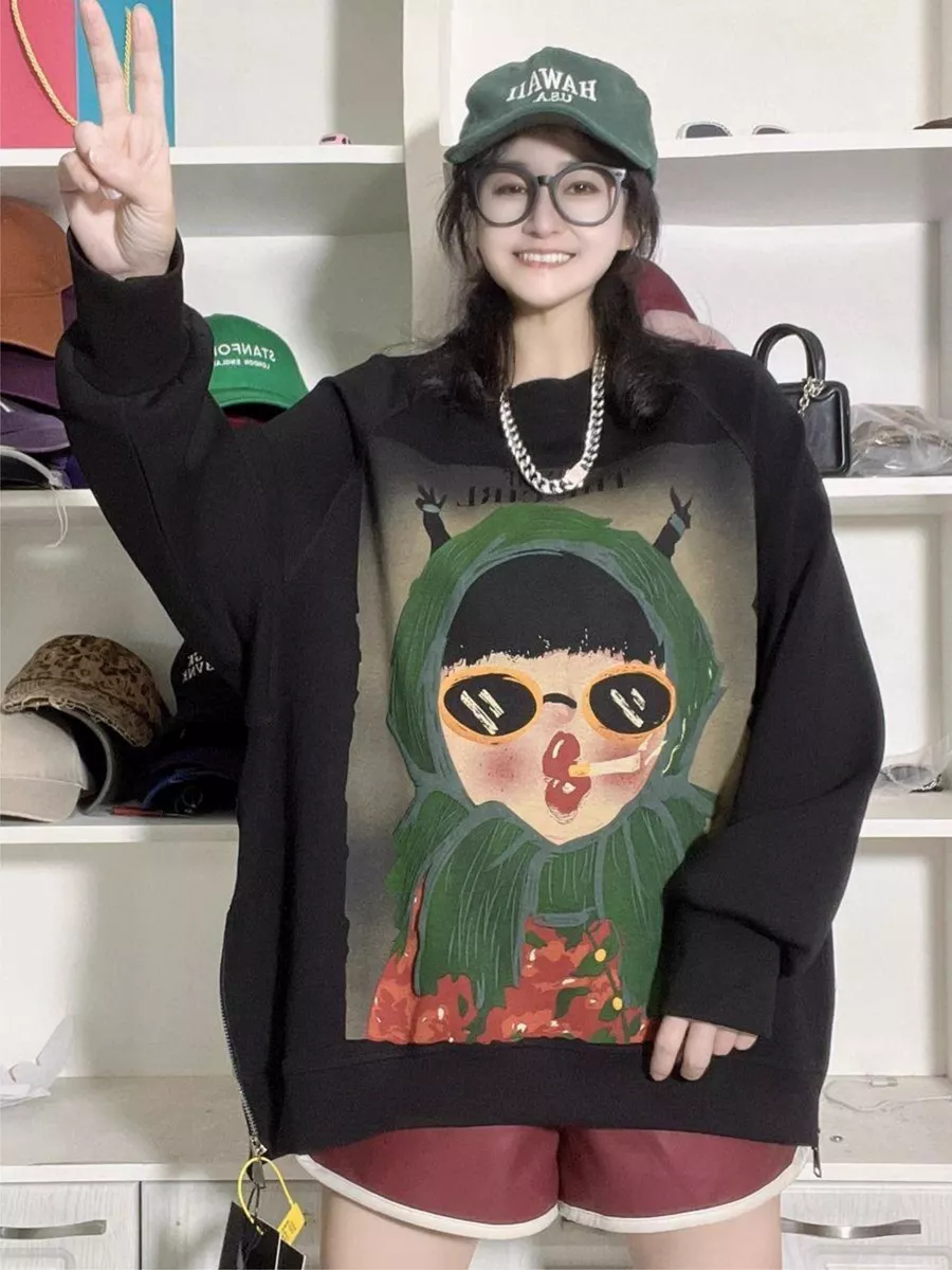 Свитшот с принтом в корейском стиле - удобная и стильная одежда, подходящая для повседневных образов и как кофта для беременных. Его оверсайз и удлиненный крой обеспечивают комфорт и практичность, а принт в стиле Y2K придает ему особый шарм.