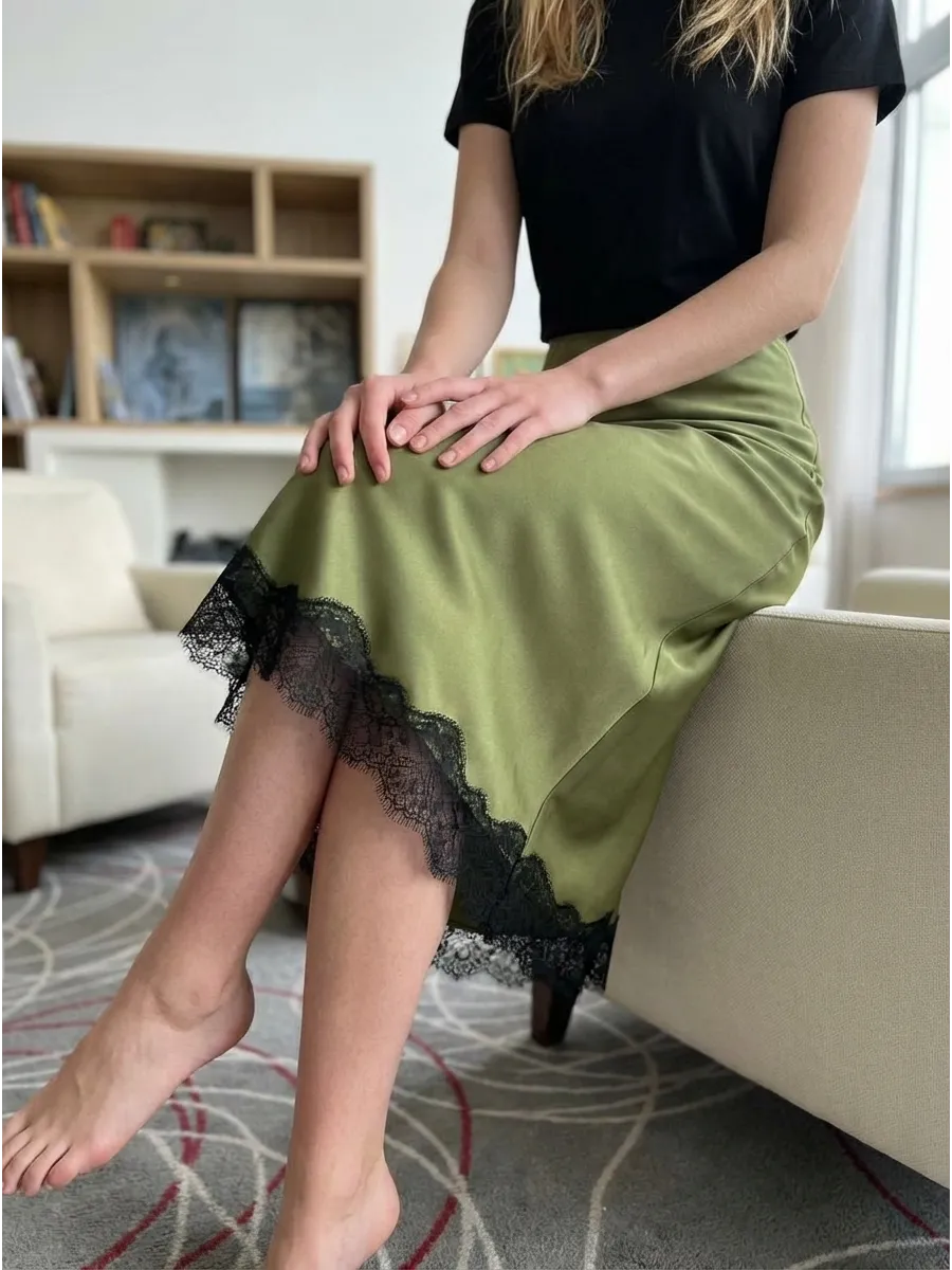 Юбка "На вес золота" - это элегантное и женственное дополнение к любому гардеробу. Сшитая из струящегося атласа, она приятно облегает фигуру, создавая неповторимый силуэт. Декоративное кружево добавляет юбке особый шарм и изысканность. Модель миди длины идеально подходит как для повседневных образов, так и для особых случаев. Коричневый цвет юбки универсален и легко сочетается с различными оттенками верха.